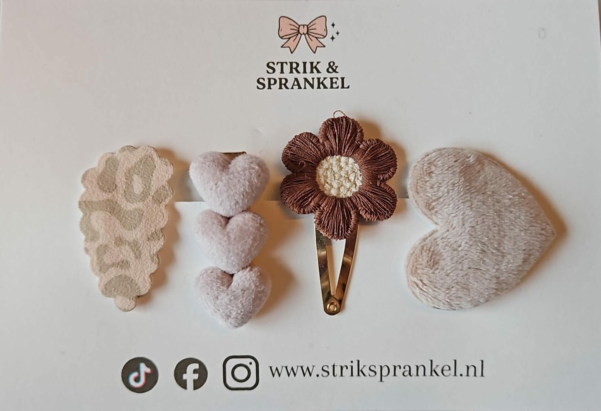 Speld 3: Speldje goud 4 cm bruin/wit bloem